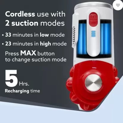 Regency Cordless Stick Vacuum Cleaner is a Dry Vacuum cleaner with 2 Suction Modes. It works on a rechargeable and detachable battery and perfect for Deep Cleaning Carpet and Hard Floor.