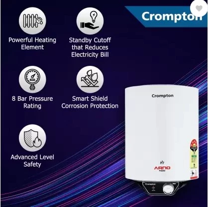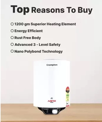 Crompton Water Heaters have advanced 3-level safety that keeps all parameters in check for protection against electric shocks and auto-off function in case of malfunction.