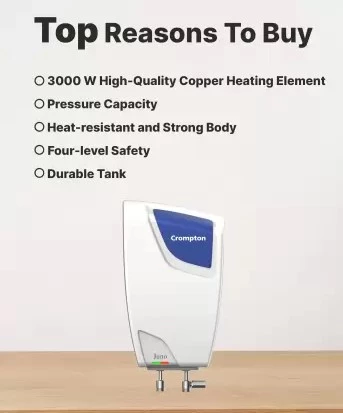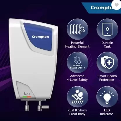 Equipped with a 3000 W high-quality copper heating element, the Crompton Juno 5 L Instant Water Heater heats water in a short span so that you can use it whenever needed. So, you won’t have to wait too long to use hot water for your bath.