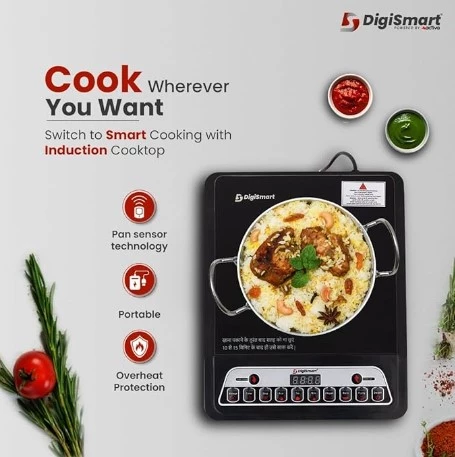 DIGISMART Mark-1 Induction Cooktop (2000 Watts) |Indian Menu Option|Automatic power & temperature adjustment|Protection against insects Induction
