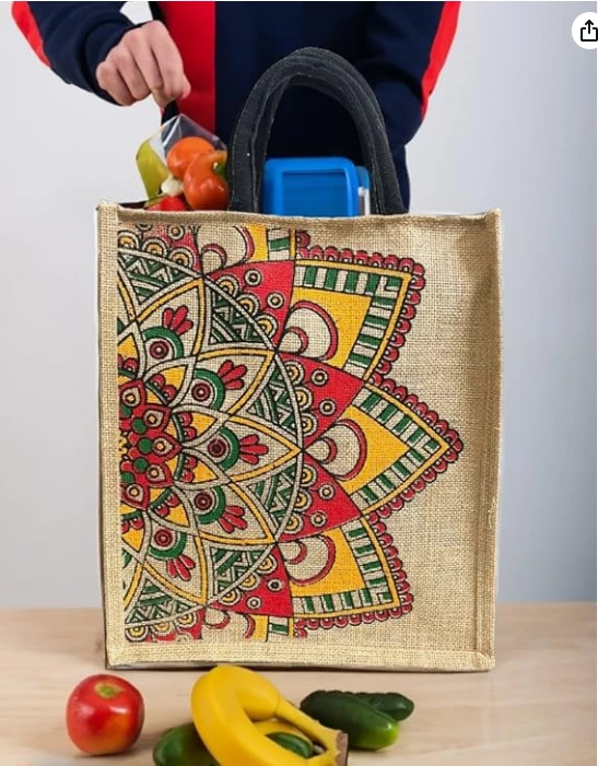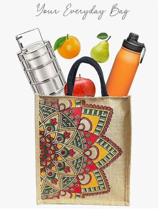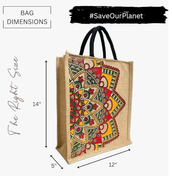 STYLE & SIZE - Stylish and trendy prints to make you stand out, A multipurpose Jute Club jute bag which can be used as a Lunch Bag, Tote bag, shopping bag, Handbag, Ethnic Bags, Messenger Bags, Everyday Handbags, Travel Bag, Party Bag and as a utility Bag for Work/ For Gym/ For Collage/ For Shool Bag.
