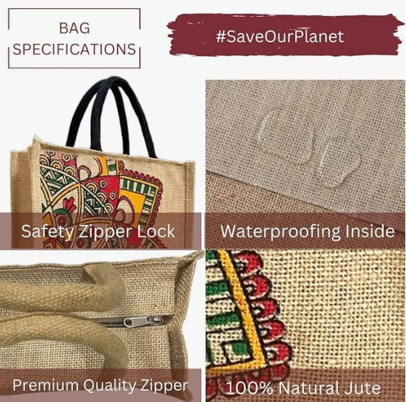 PROUDLY MADE IN INDIA -Jute Club Jute Bag is solely made by local artisians, Hand Printed with Our Eco- Friendly Inks, Handcrafted by using Simple Tools and sustainable design – Support traditional arts and crafts techniques.