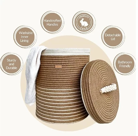 • This Jute Laundry Basket has beautiful and sturdy handles so that you can carry the laundry basket within your home