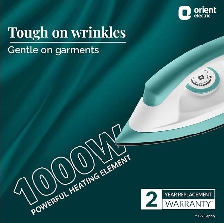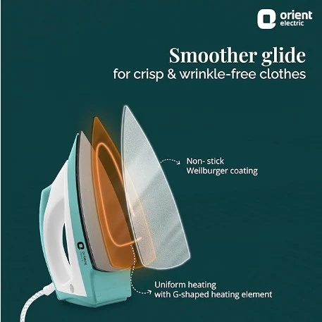 • German-made non-stick coating: Orient Electric’s iron comes with a non-stick, scratch-resistant German-made Weilburger coating on the soleplate, for smooth & effortless glide on a variety of fabrics.