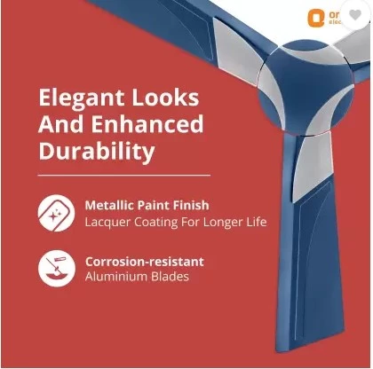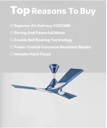 A smart, flat design fan to match your class. Provided with downrod cover, stylish blade trims & metallic finish dual colour combinations to add to your home décor. Wide blades for High Air Thrust & High Air Delivery.