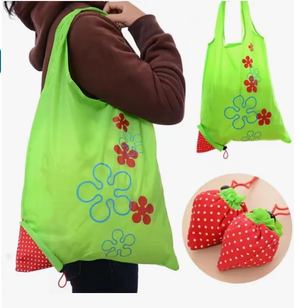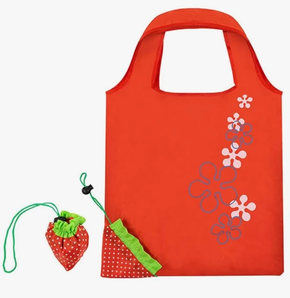 • Set of 12 -Eco Friendly Folding Nylon Strawberry Shape Shopping Bag