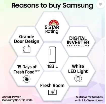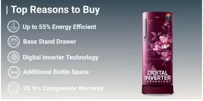 Thanks to its Digital Inverter technology, the Samsung Refrigerator facilitates energy efficiency, low operational noise, and long-lasting durability. Additionally, in response to the cooling requirements, this refrigerator's Digital Inverter Compressor automatically modifies its speed.